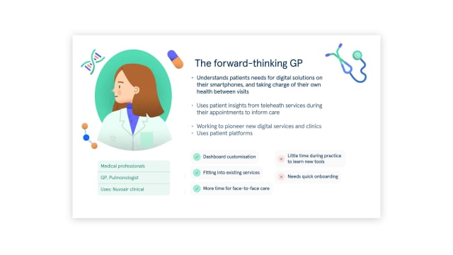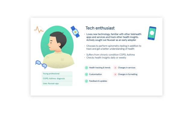 Through interviewing clinicians in their network and Nuvoair’s business partners, the need for a structured PPC (Patient Provider Communication) approach to inform Nuvoair and their agile working method directly became clear, by using anticipatory feedback and the connections they already had.